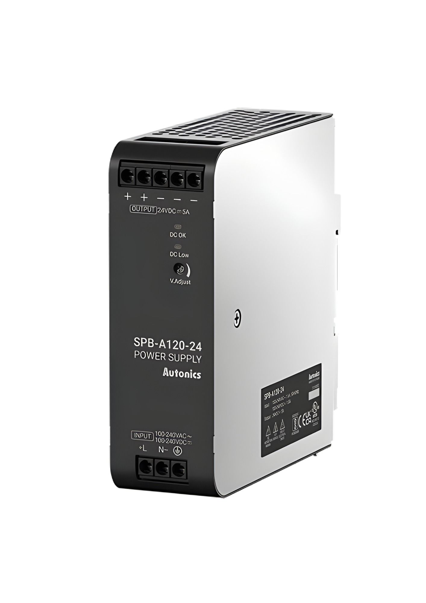 Autonics SPB-A120-24, Input Voltage 100-240VAC~/ 90-350VDC, Output Voltage 24VDC, Output Current 5A, DIN Rail Switching Mode Power Supply