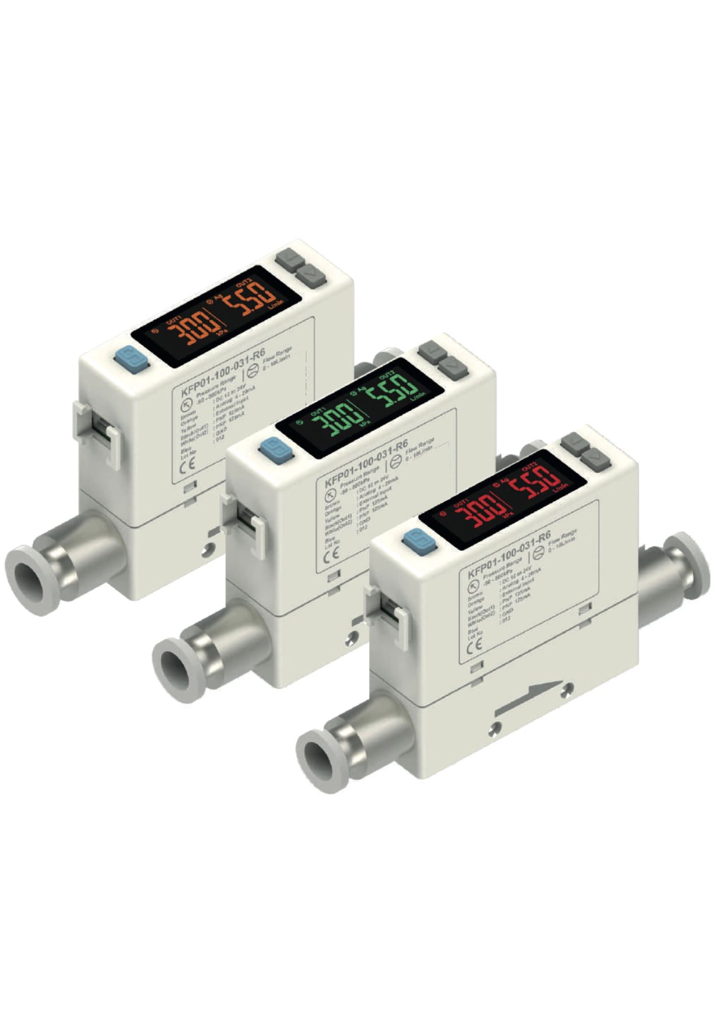 KFP01-100-010-R6 | Digital Flow & Pressure Sensor, 4 digit 7 segment dual LCD display