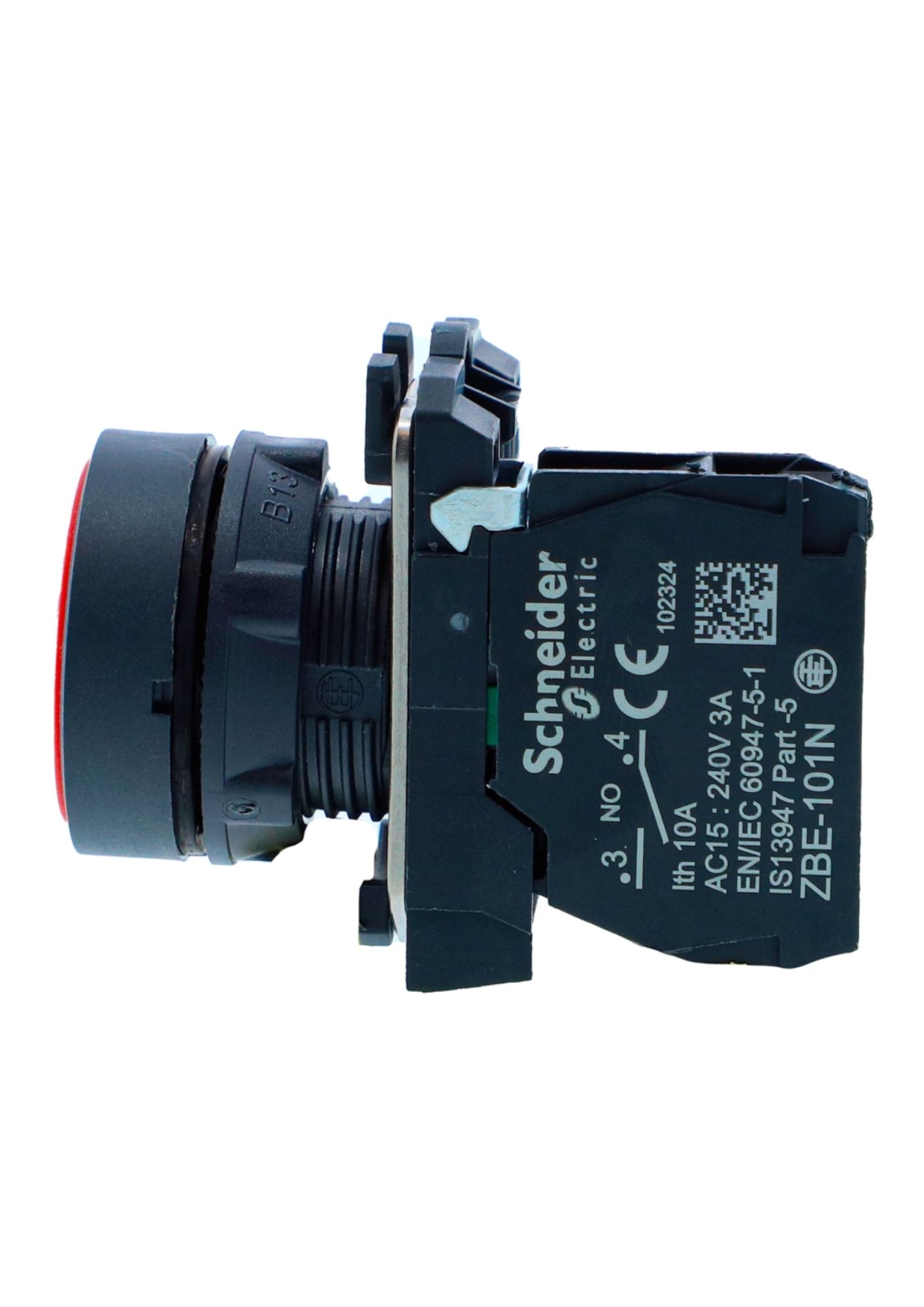 Schneider XB5AA41N, Push button, Harmony XB5, Plastic, Flush, Red, 22mm, Spring Return, Unmarked, 1 NO