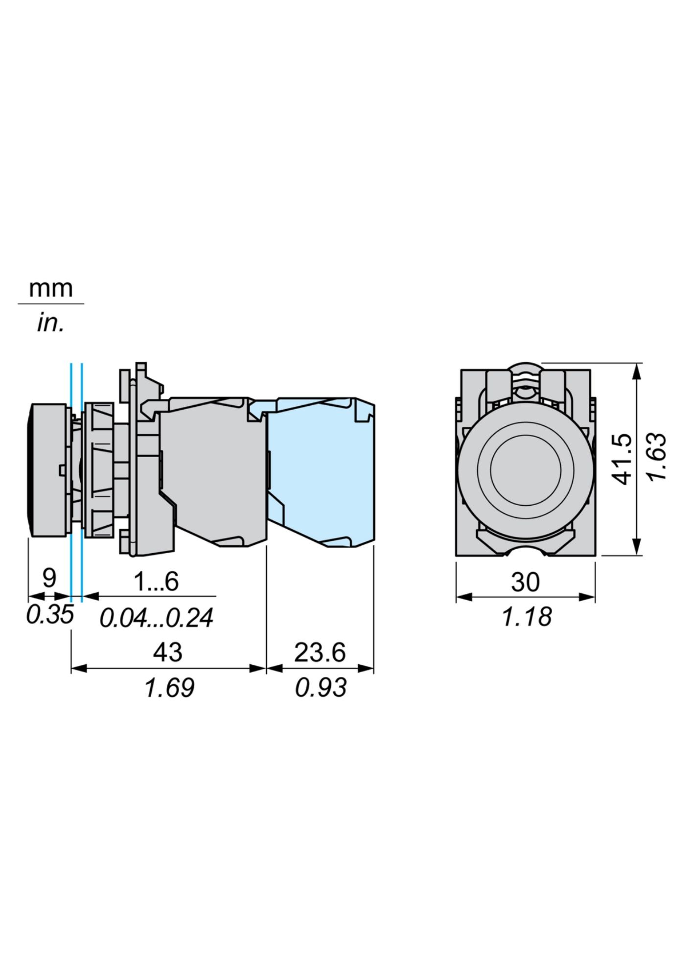 | Device mounting | Fixing hole Ø 22.5 mm (22.3 +0.4/0) per IEC 60957-5-1 |