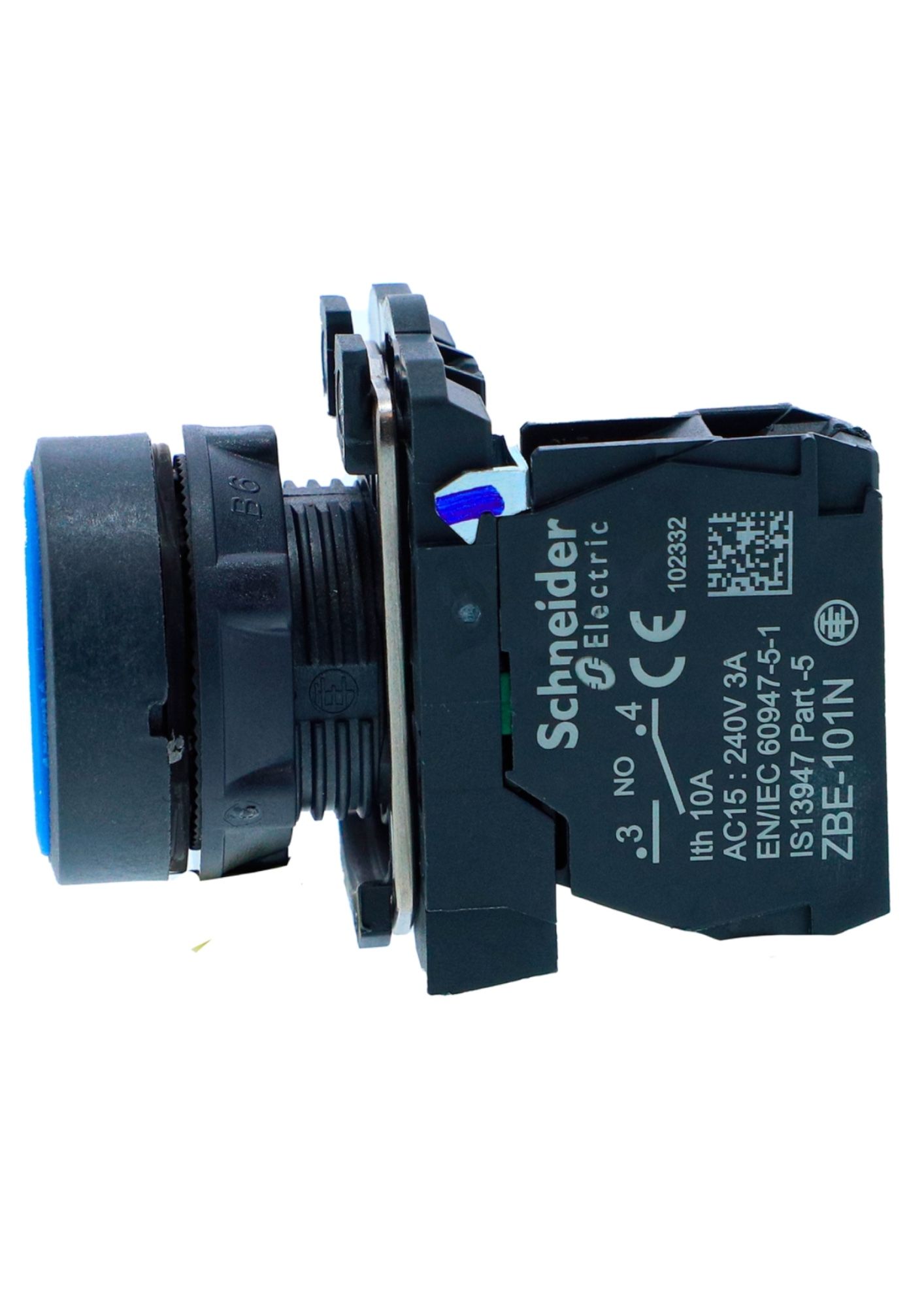 Schneider XB5AA61N, Push button, Harmony XB5, Plastic, Flush, Blue, 22mm, Spring Return, Unmarked, 1 NO