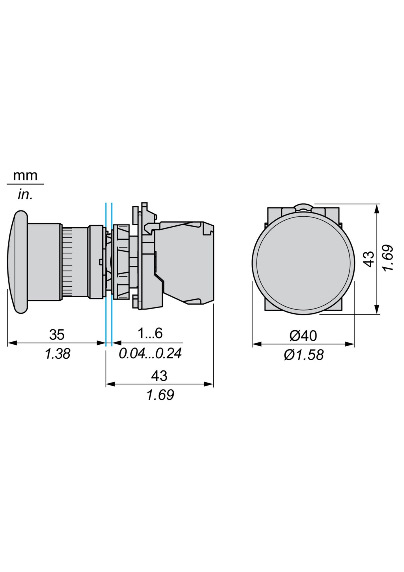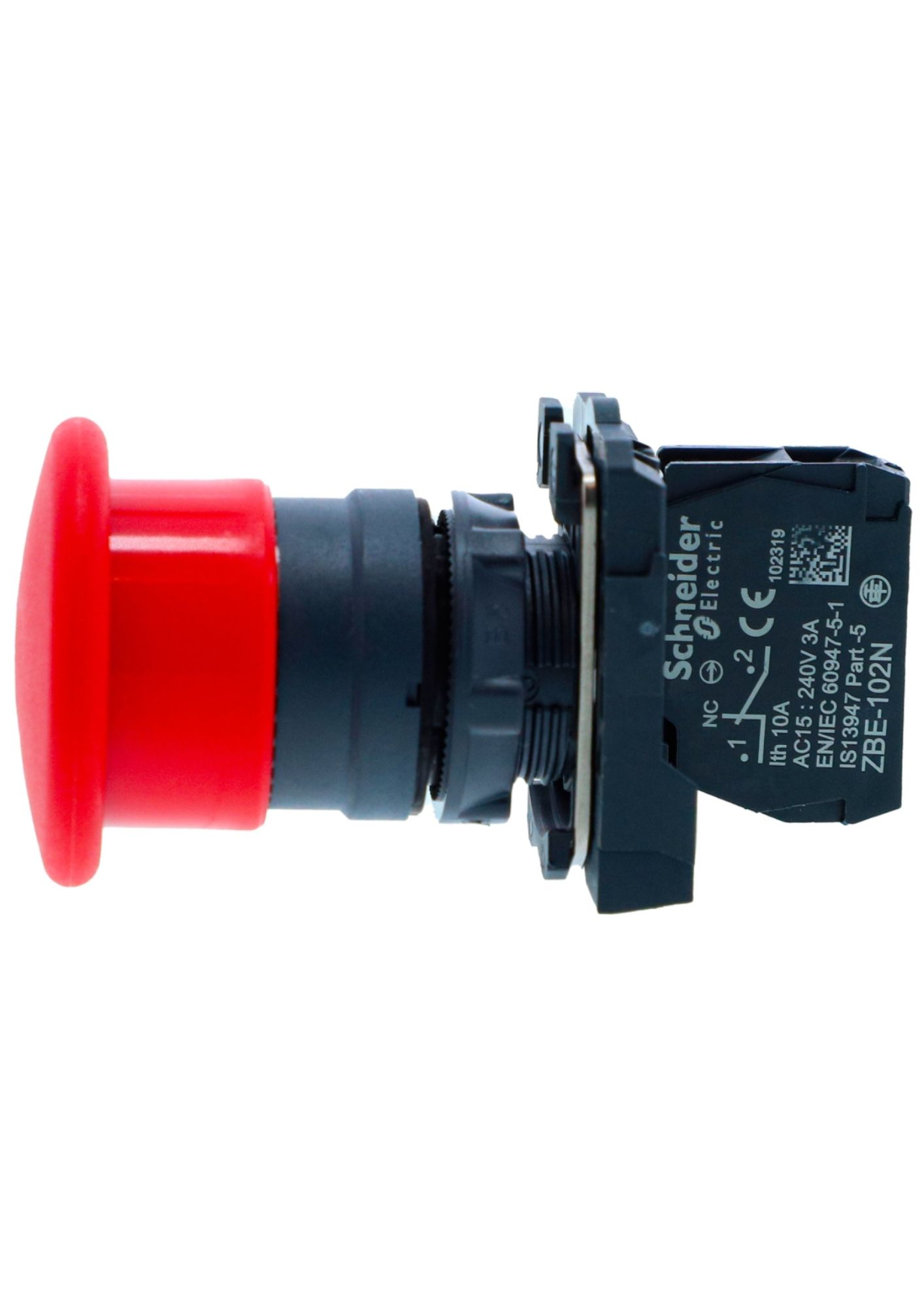 Schneider XB5AC42N, Push button, Harmony XB5, Plastic, Mushroom, Red, 40mm, Spring Return, Unmarked, 1NC