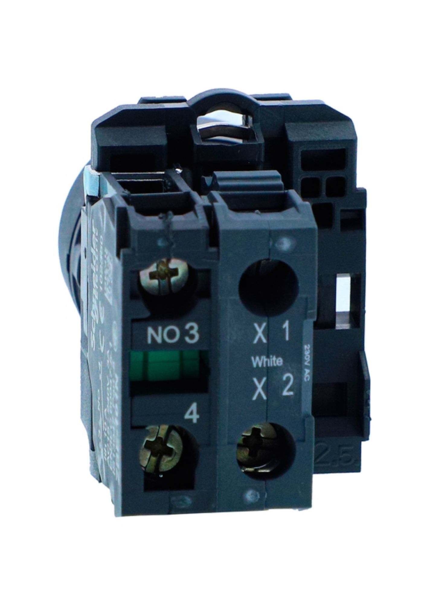 Schneider XB5AK121M1N, Ill selector switch, Harmony XB5, Plastic, White, 22mm, Short handle, 2 position, Stay put, 230V AC, 1 NO