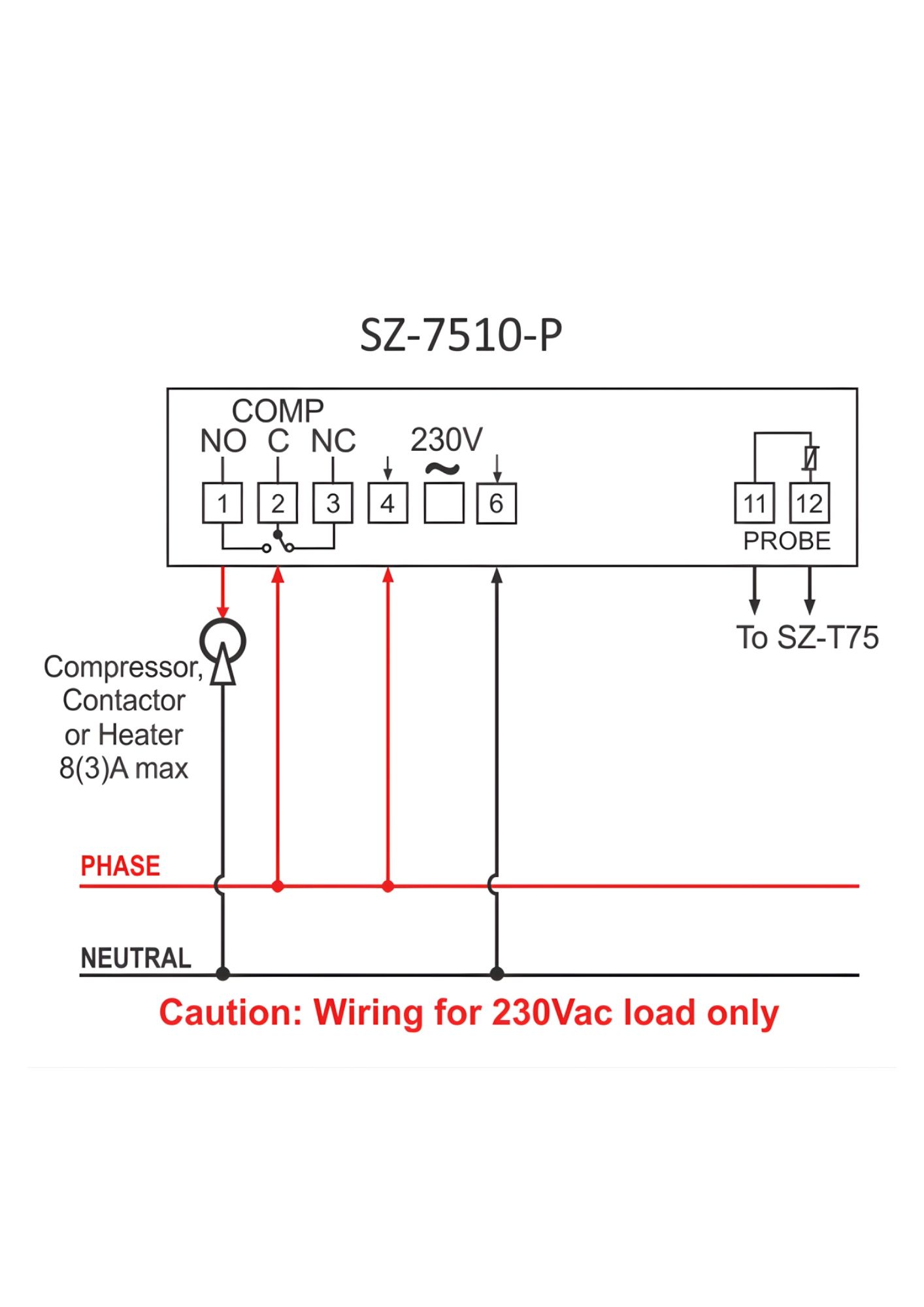 Subzero SZ-7510-P, 7 Segment LED Display, 230V AC, NTC, Panel Mount, Temperature Controller