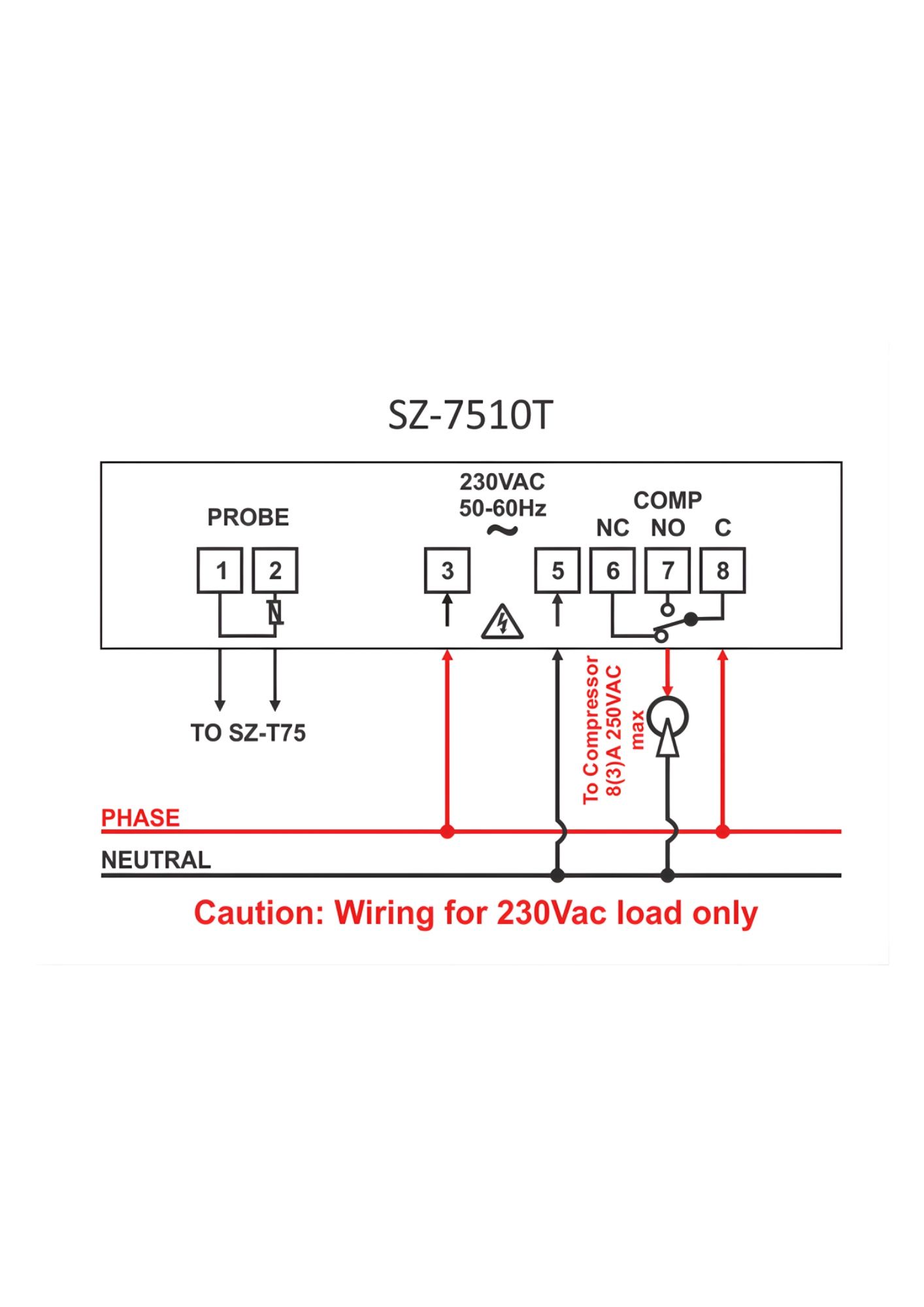 Subzero SZ-7510-T, 7 Segment LED Display, 230V AC, NTC, Panel Mount, Temperature Controller